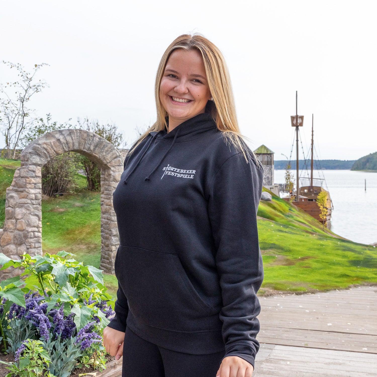 Der Hoodie „Adler küsst Störtebeker“ vereint Tradition, Handwerk und Liebe zum Detail. Mit Herzblut direkt in Ralswiek bestickt, trägt er auf der Vorderseite das elegante Störtebeker Logo und auf der Rückseite den imposanten, zeitaufwendig gefertigten Adler – ein Symbol für Freiheit und Stärke. Ein Kleidungsstück, das nicht nur wärmt, sondern ein echtes Statement für alle Fans der Störtebeker Festspiele ist.