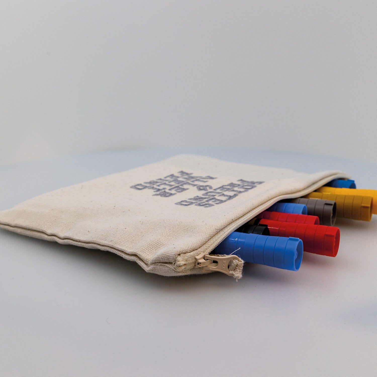 Das robuste Canvas-Material aus recycelten Fasern macht das Pencil-Case langlebig und nachhaltig. Der Nylonreißverschluss mit Schieber und Fischgrät-Band rundet das Design funktional und stilvoll ab, während die saubere Einfassung aller Nähte innen höchste Qualität garantiert.