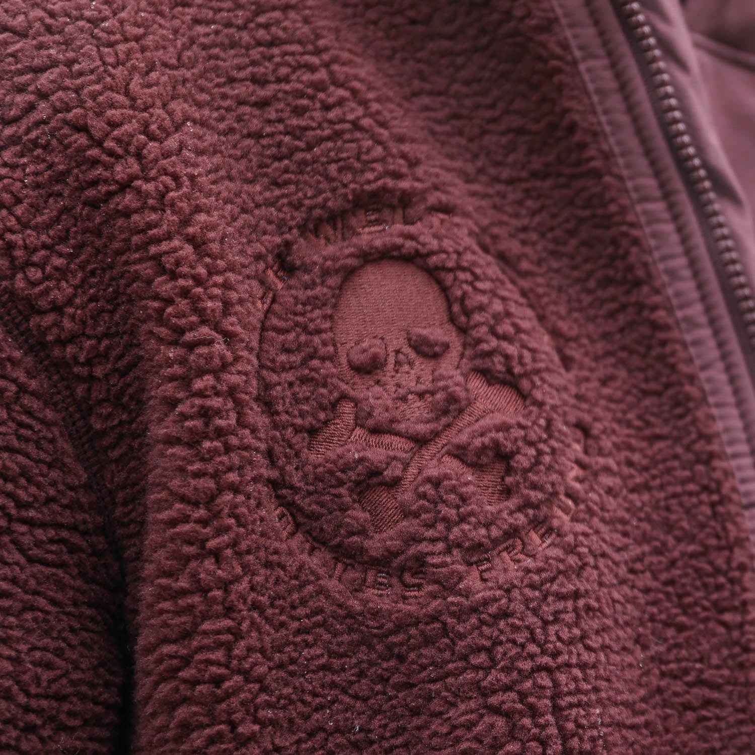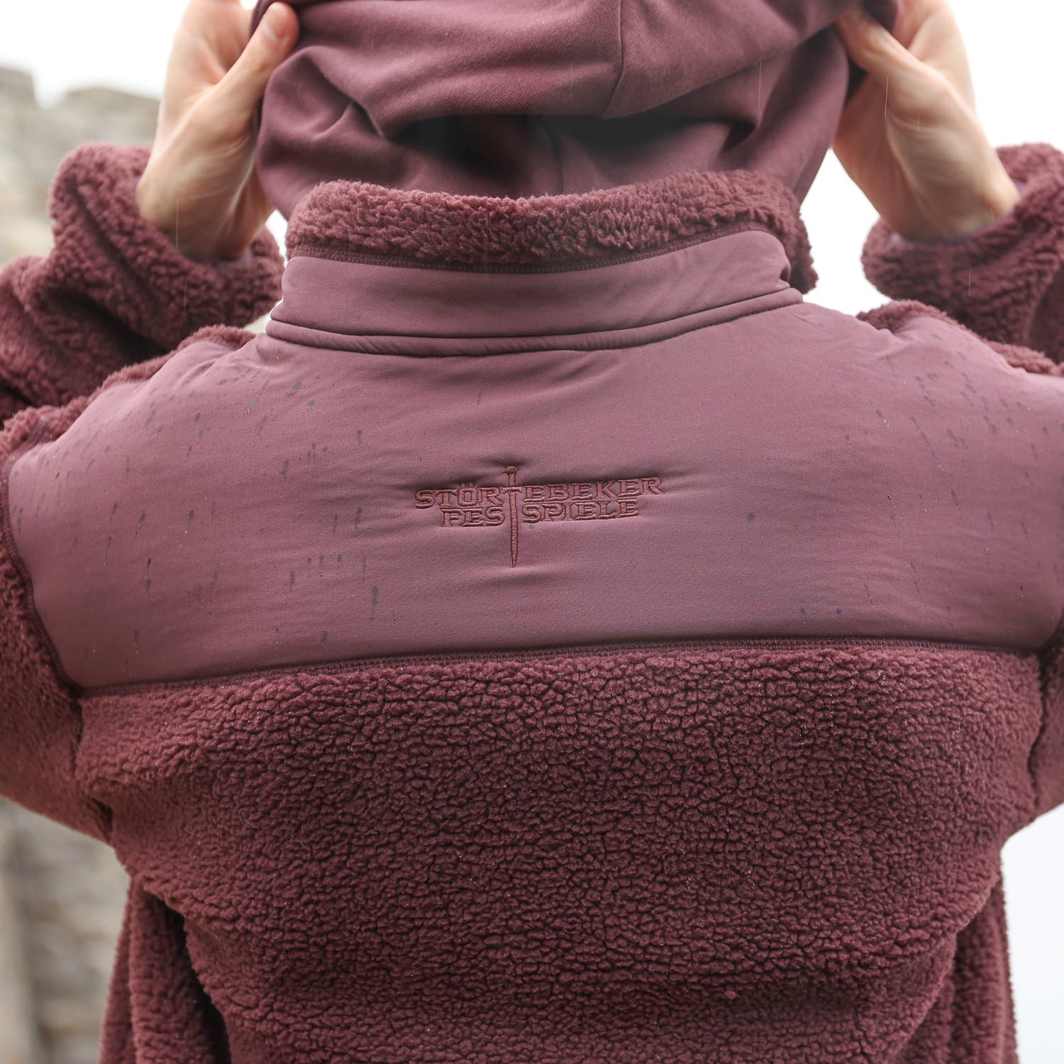 »Gottes Freund 2.0« – Störtebeker SHERPA-Jacke mit kuschligem Polarfleece innen & beidseitig außen bestickt Unisex – Rotbraun