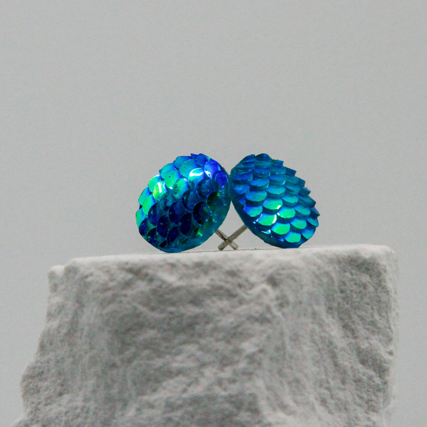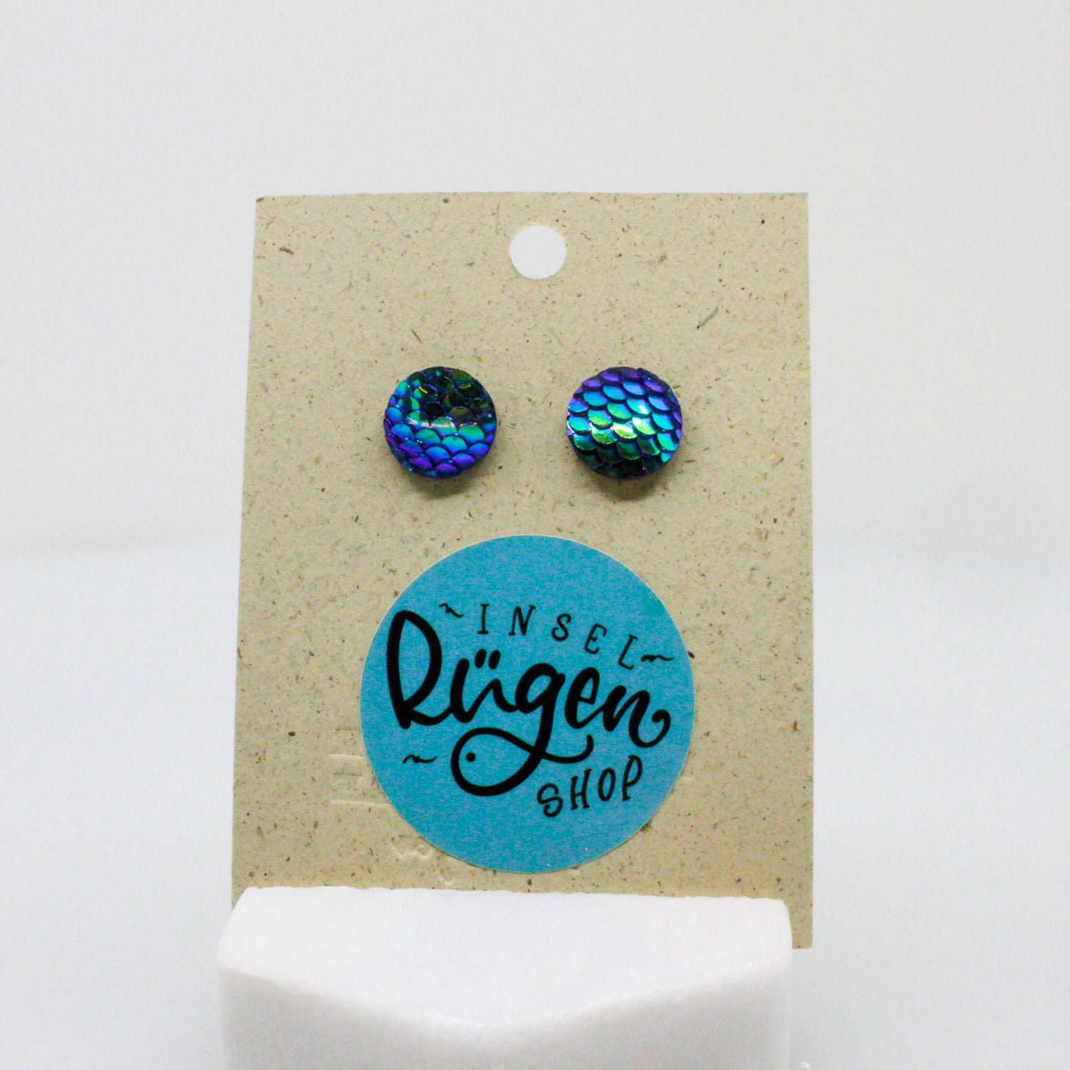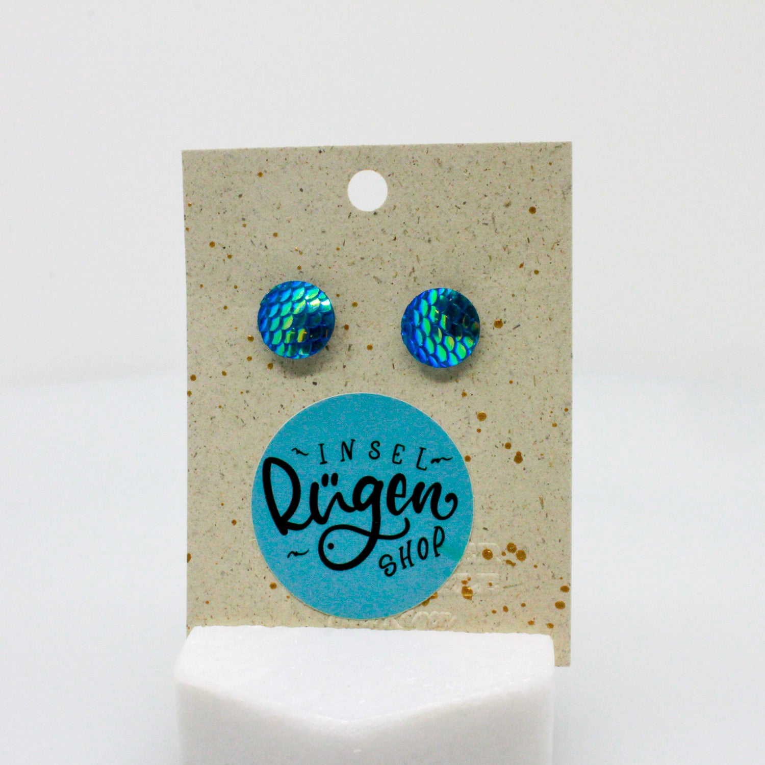 Diese handgemachten Ohrstecker schimmern wie die Ostsee selbst. Die changierende Schuppenoptik reflektiert das Licht in Türkis- und Blautönen – ein funkelnder Hingucker für alle Meerjungfrauen.