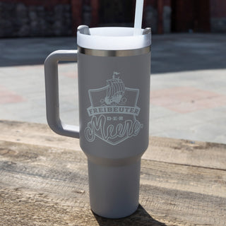 Für alle, die klare Haltung zeigen: Dieser Becher trägt den legendären Wahlspruch der Freibeuter. Ein starker Auftritt – schlicht, kantig und ausdrucksstark.